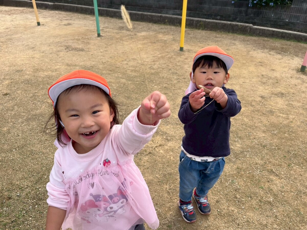 猫じゃらしに枝や石!色んな自然物を見つけて集める子もいました(^^)