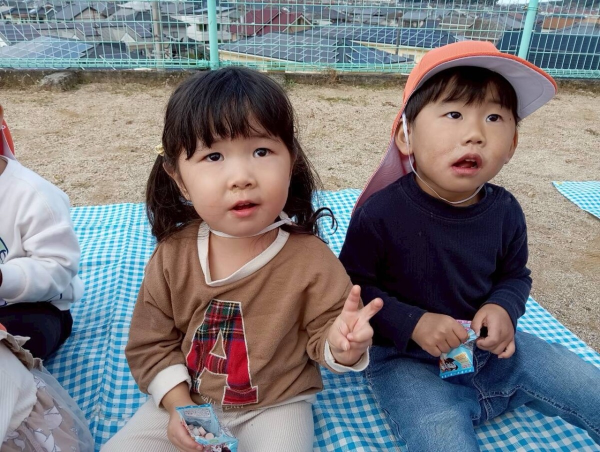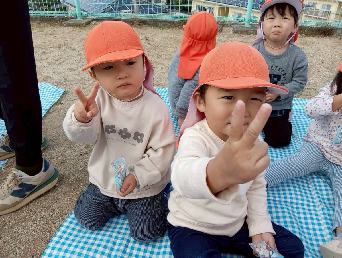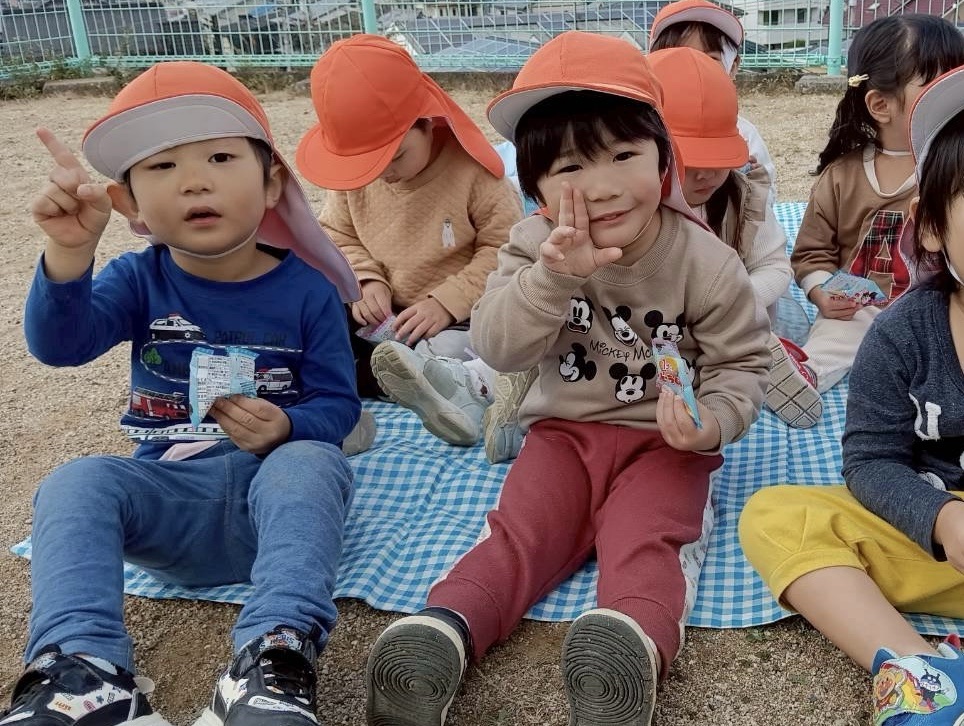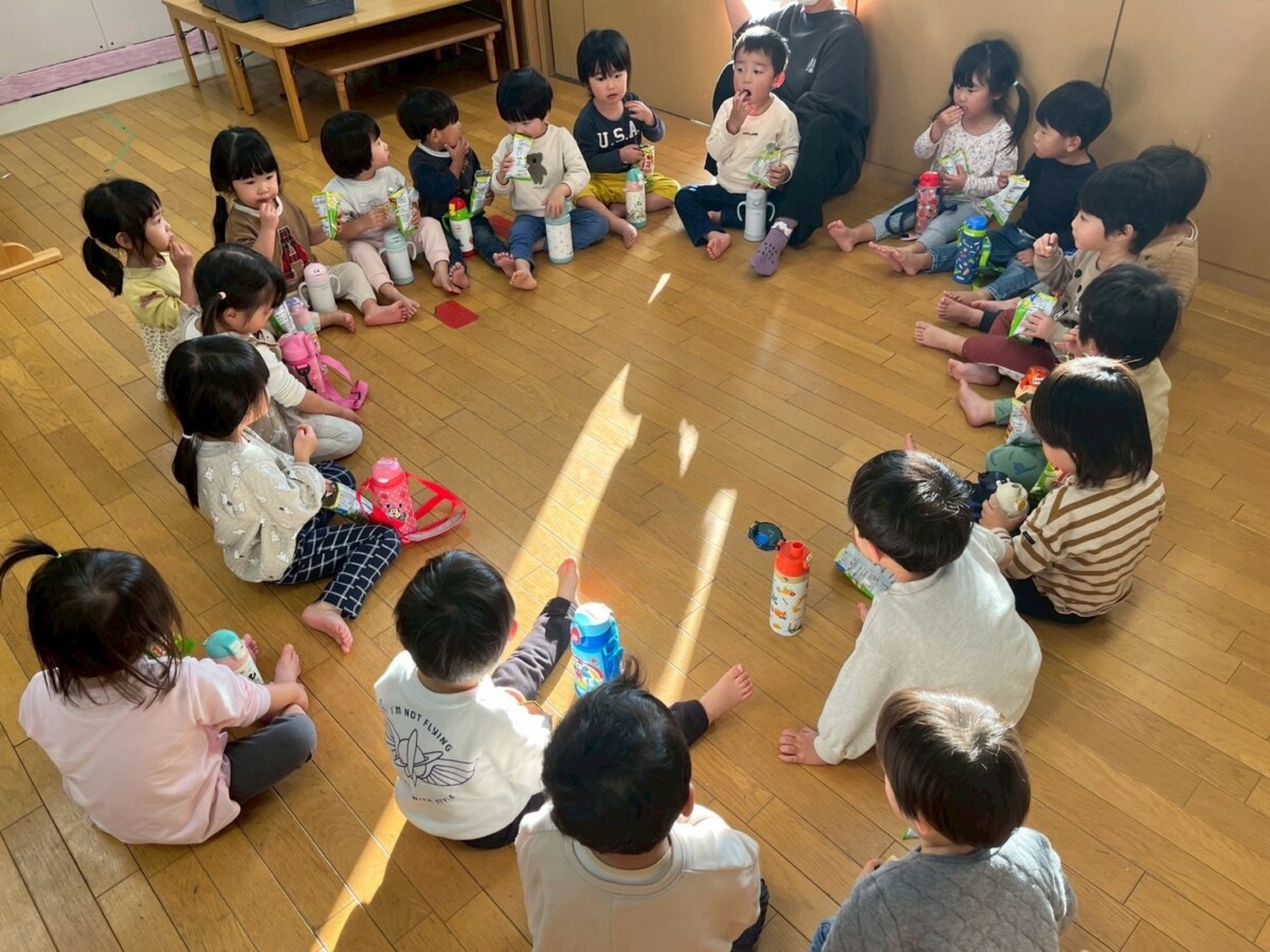 保育園でのおやつはみんなで丸くなって食べました🥰