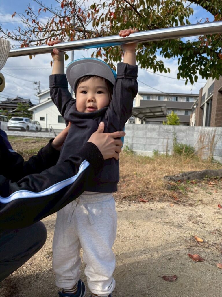 吉藤公園では、積極的に総合遊具に上がって体を動かして遊んだり、鉄棒やブランコを保育士と一緒に楽しんだりしました⭐️