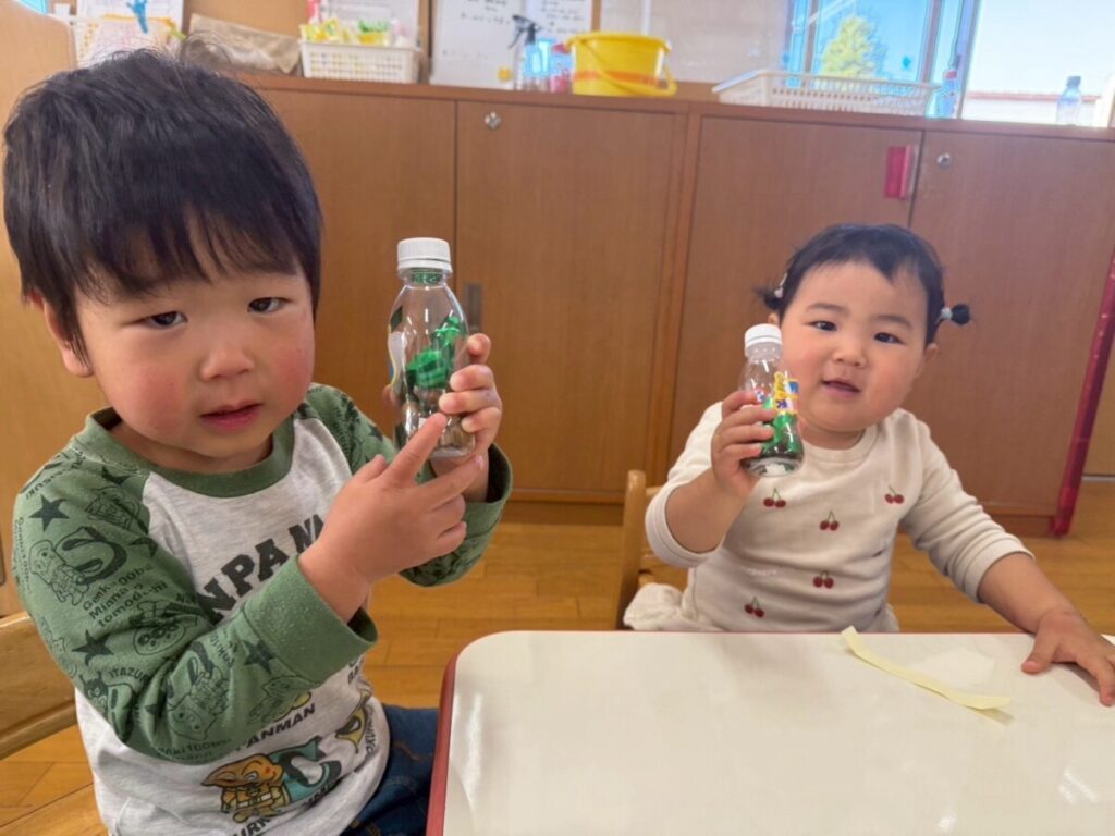 どんぐり拾いでみんなで集めたどんぐりを使ってマラカスを作りました☺️