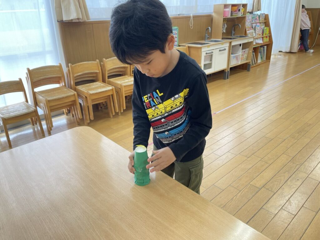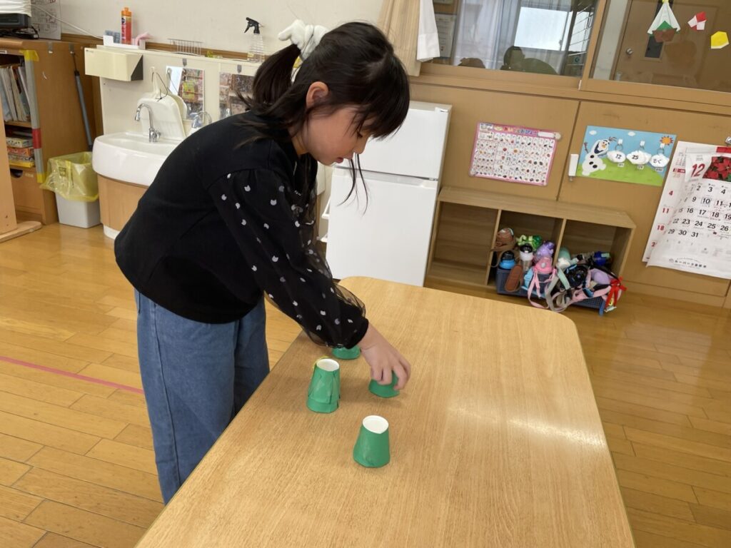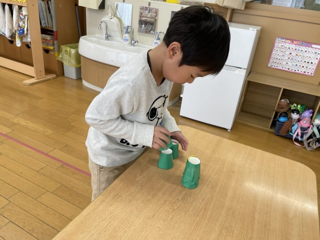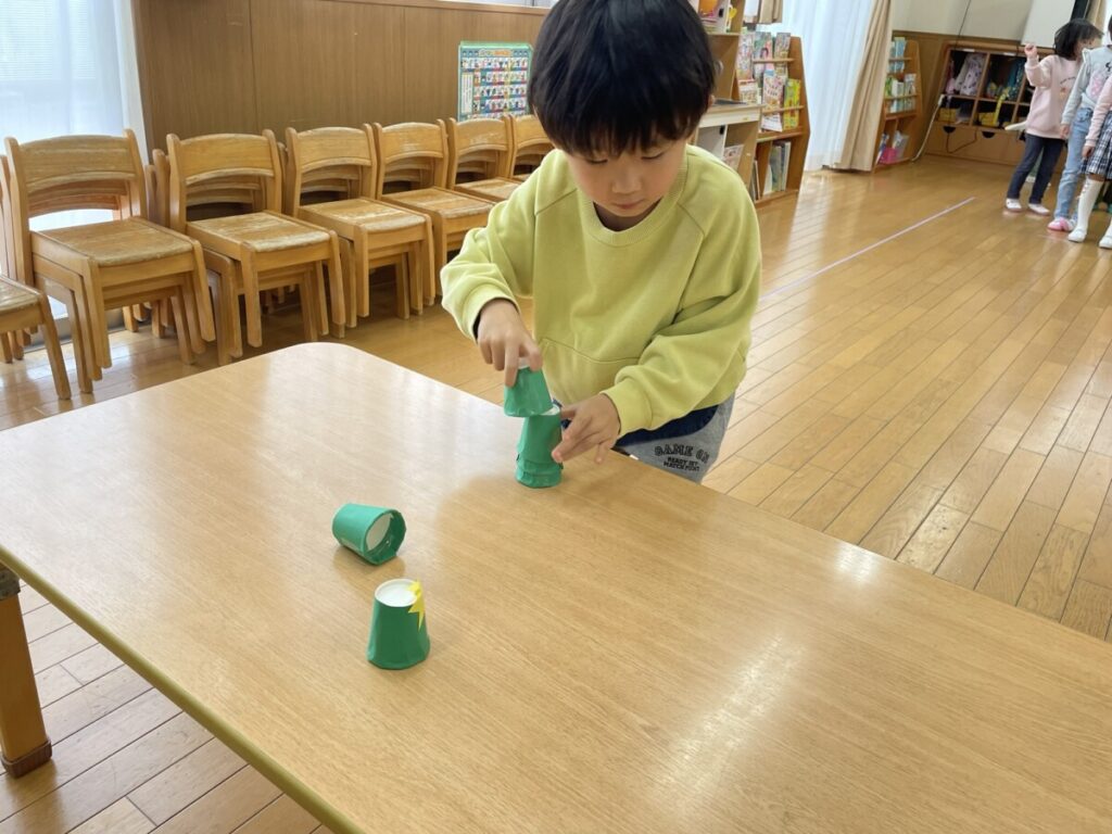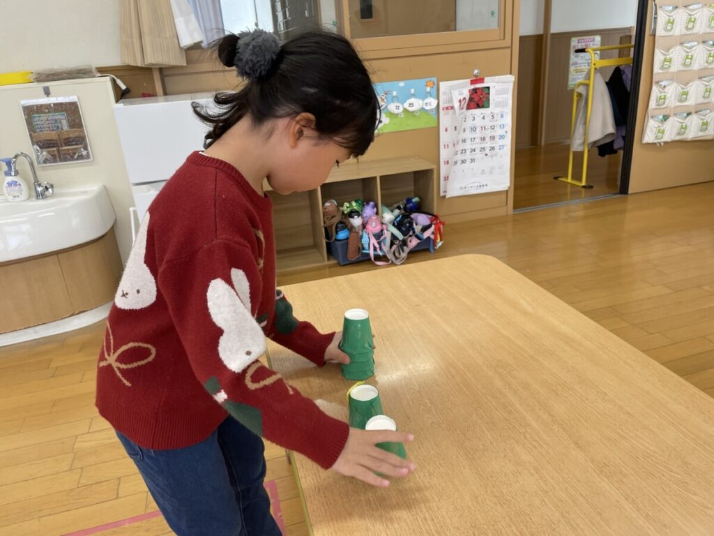 クリスマスにちなんで、紙コップツリー競走をしました🎄