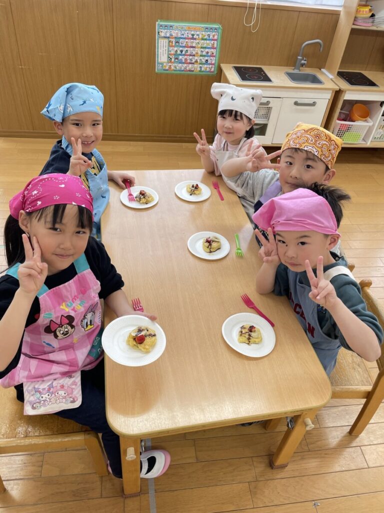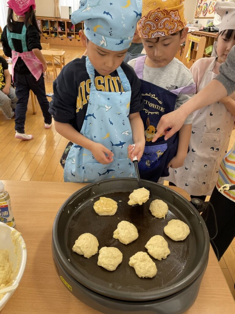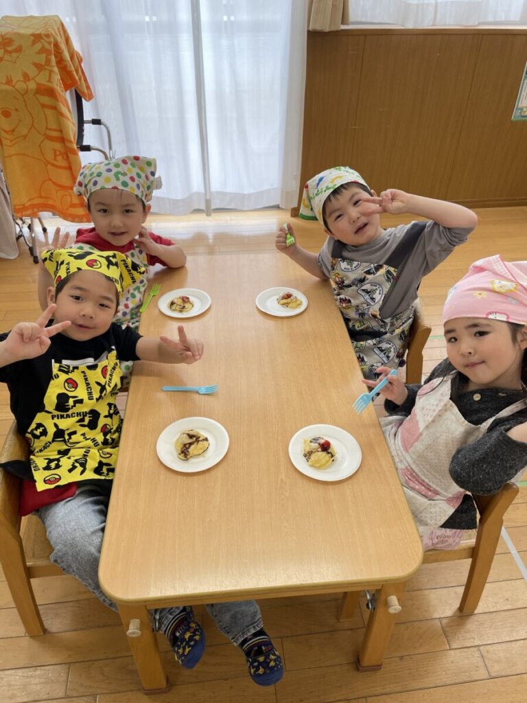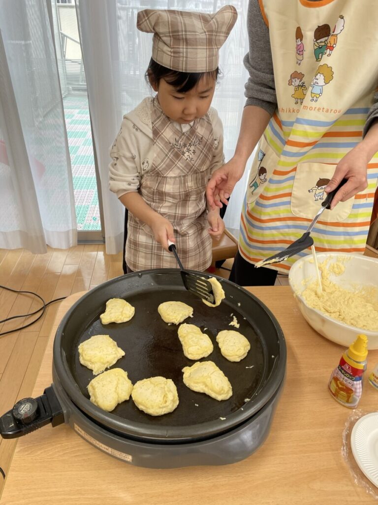 そして頑張ったみんなと一緒に、ご褒美クッキングで「パンケーキ」を作りました😊