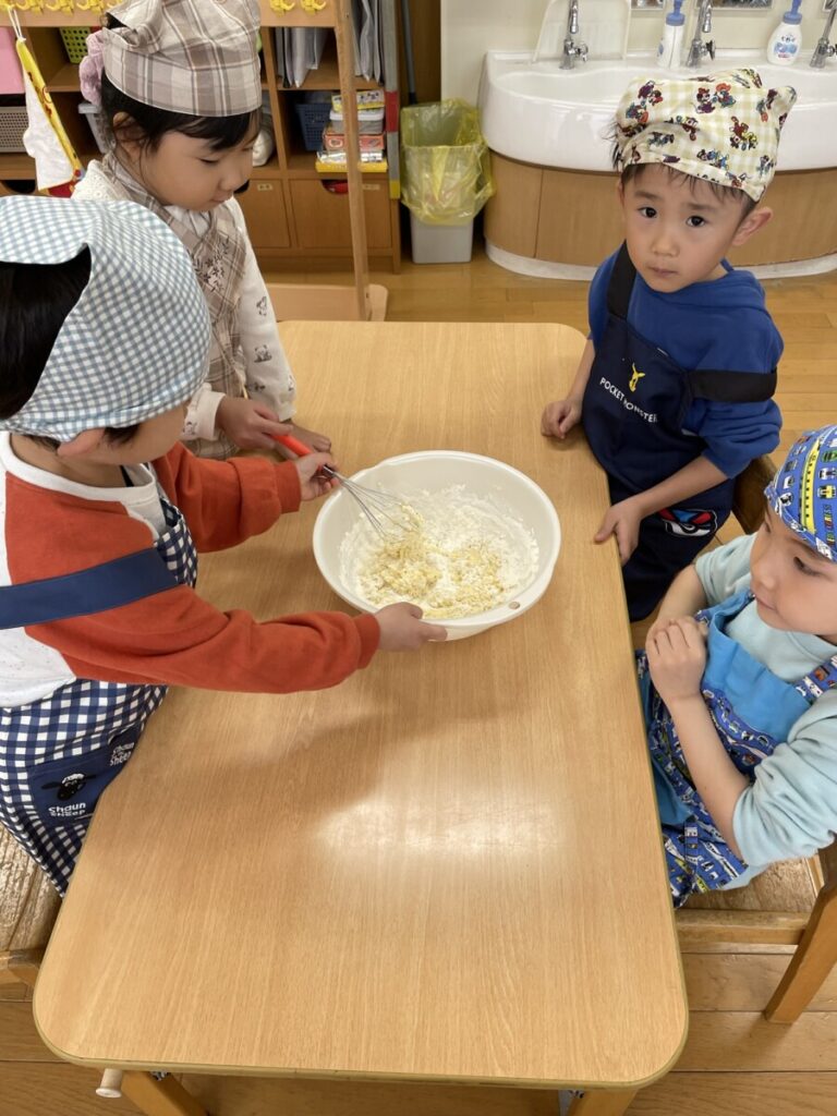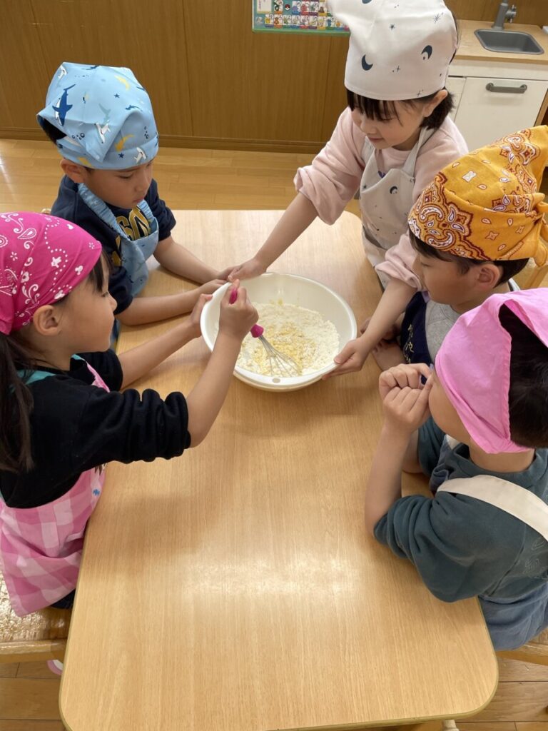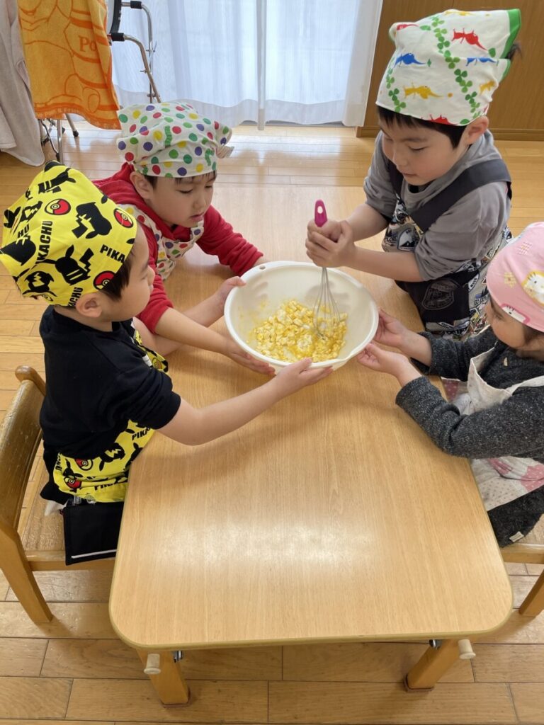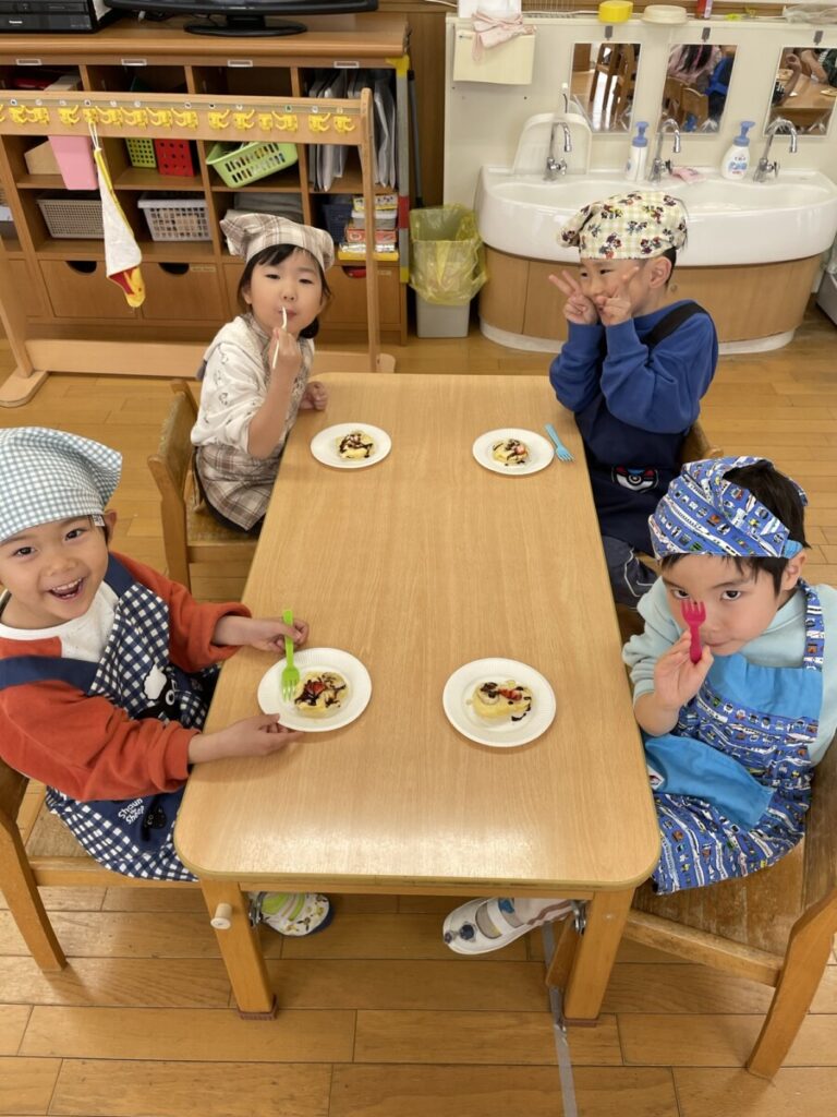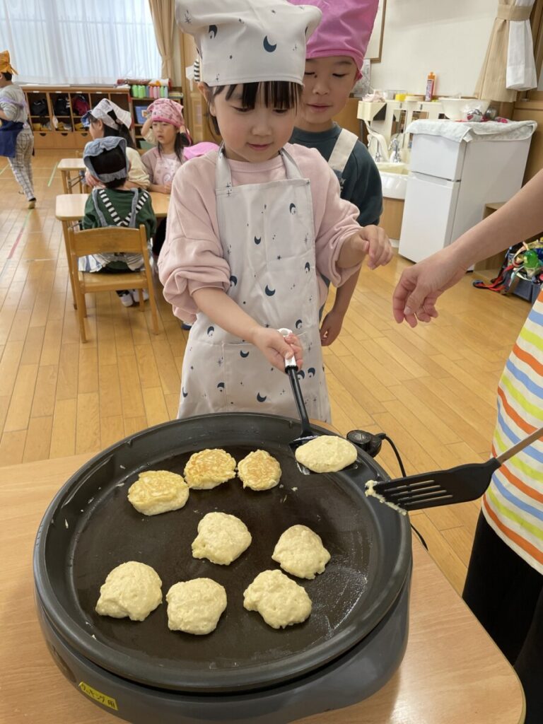 そして頑張ったみんなと一緒に、ご褒美クッキングで「パンケーキ」を作りました😊