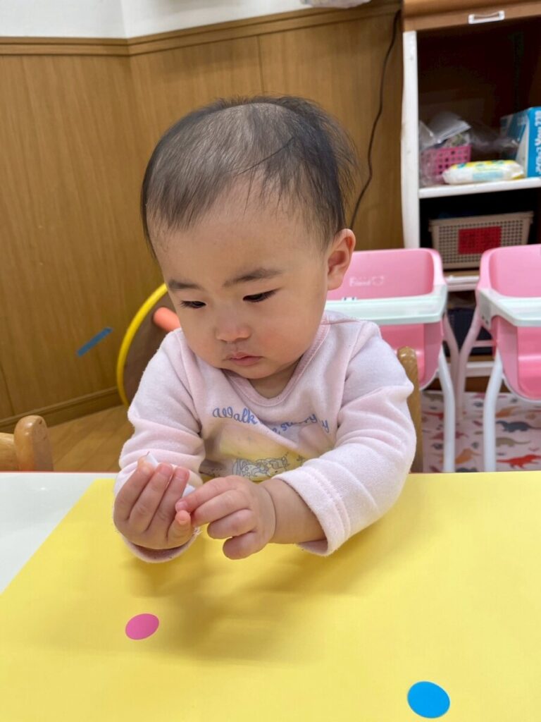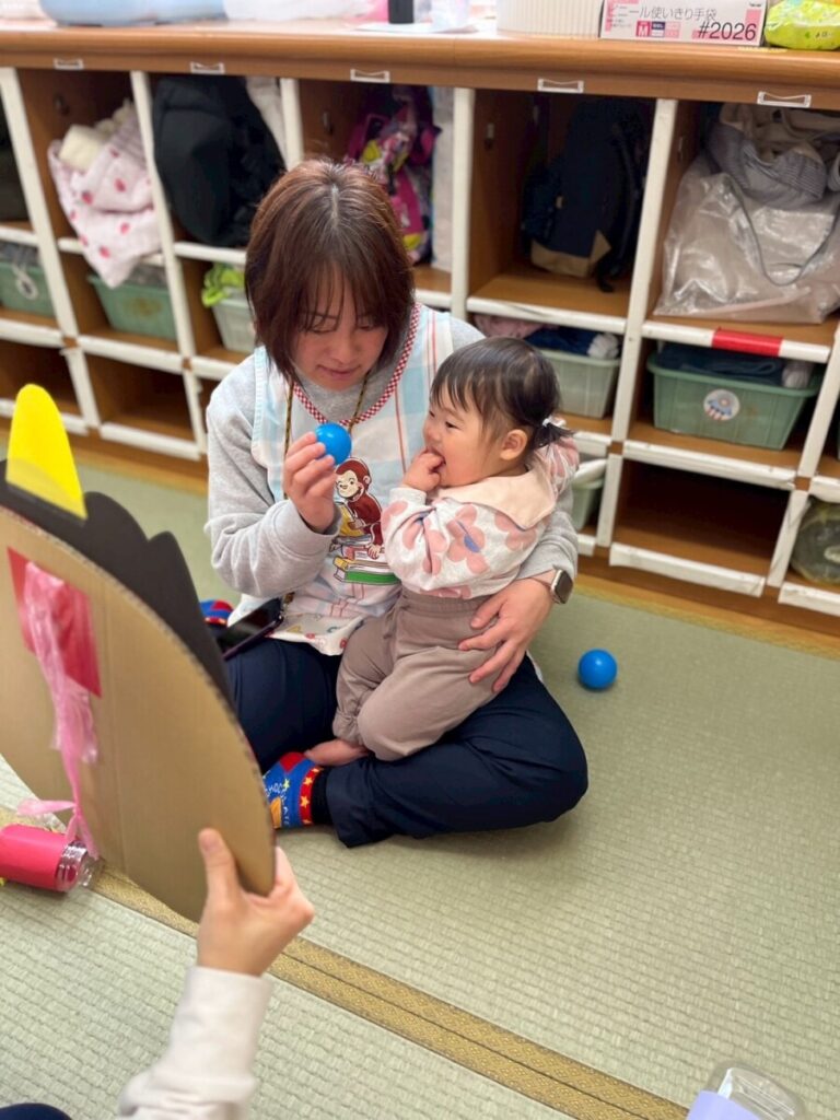 保育士の真似もできるようになり、日々いろいろな成長が見られるこもも組さん。