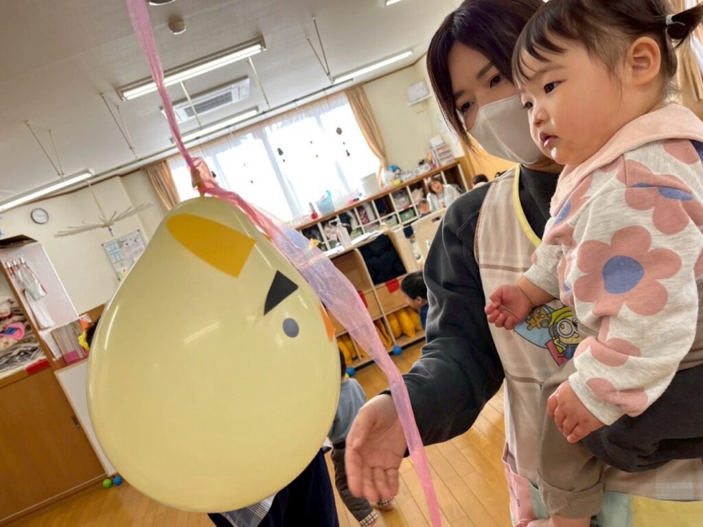 もも組さんのお部屋に遊びにいくと、風船鬼を発見!!ぽんぽんと触って遊びました❤️